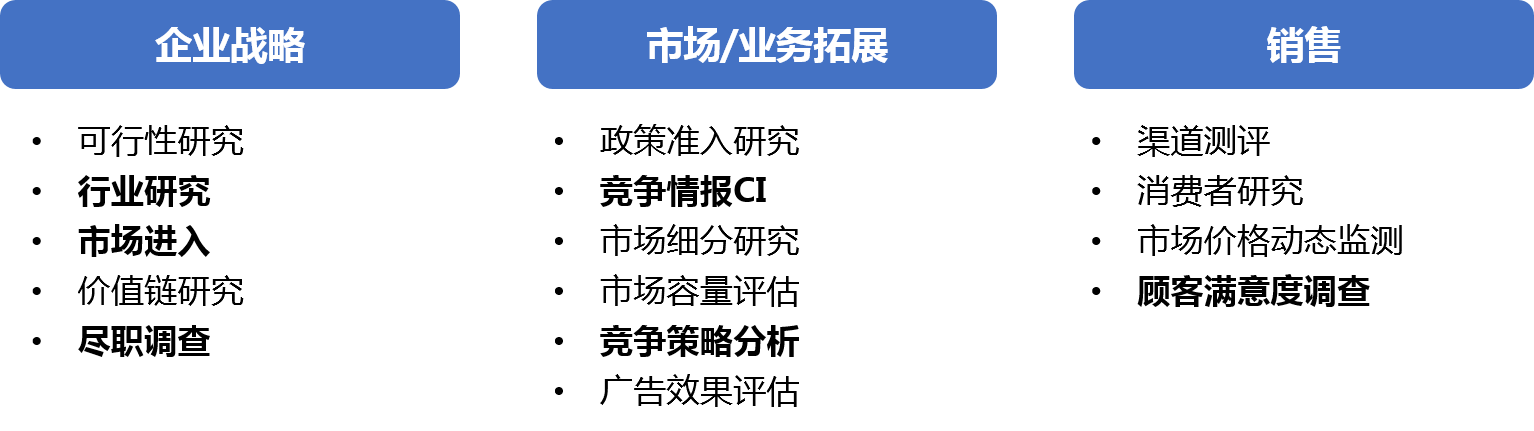 借助廣泛的行業(yè)專家網(wǎng)絡(luò)以及專注于各個(gè)行業(yè)的資深研究專家,以及多年的經(jīng)驗(yàn)累積,助您在進(jìn)入新的應(yīng)用細(xì)分市場(chǎng)前評(píng)估市場(chǎng)規(guī)模,優(yōu)化商業(yè)模式和經(jīng)營(yíng)策略。